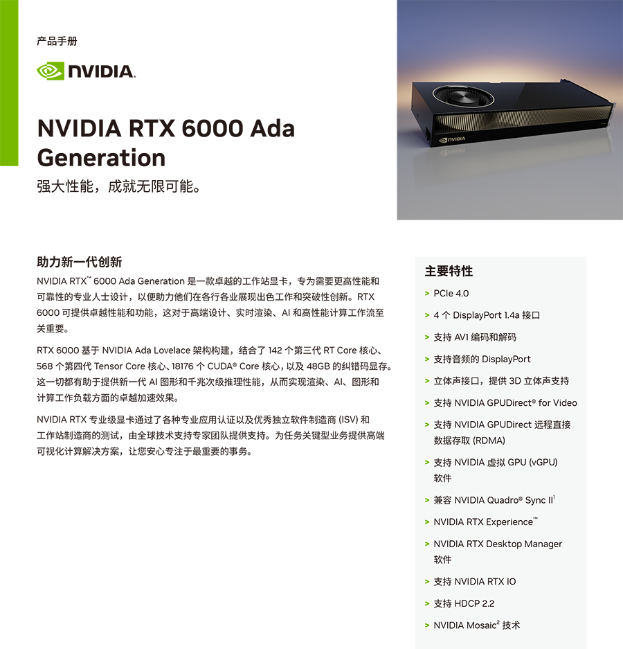 显卡参数:* 2*NVIDIA RTX6000 Ada 48GB ,单精度:91.1 TFLOPS;