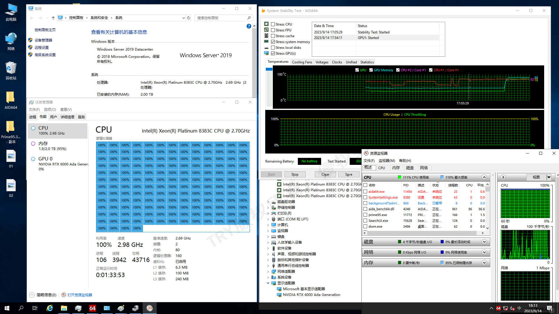 关键参数:80核2.7GHz/2TB DDR4/1TB+10TB/RTX6000 Ada 48GB/1600W(1+1)